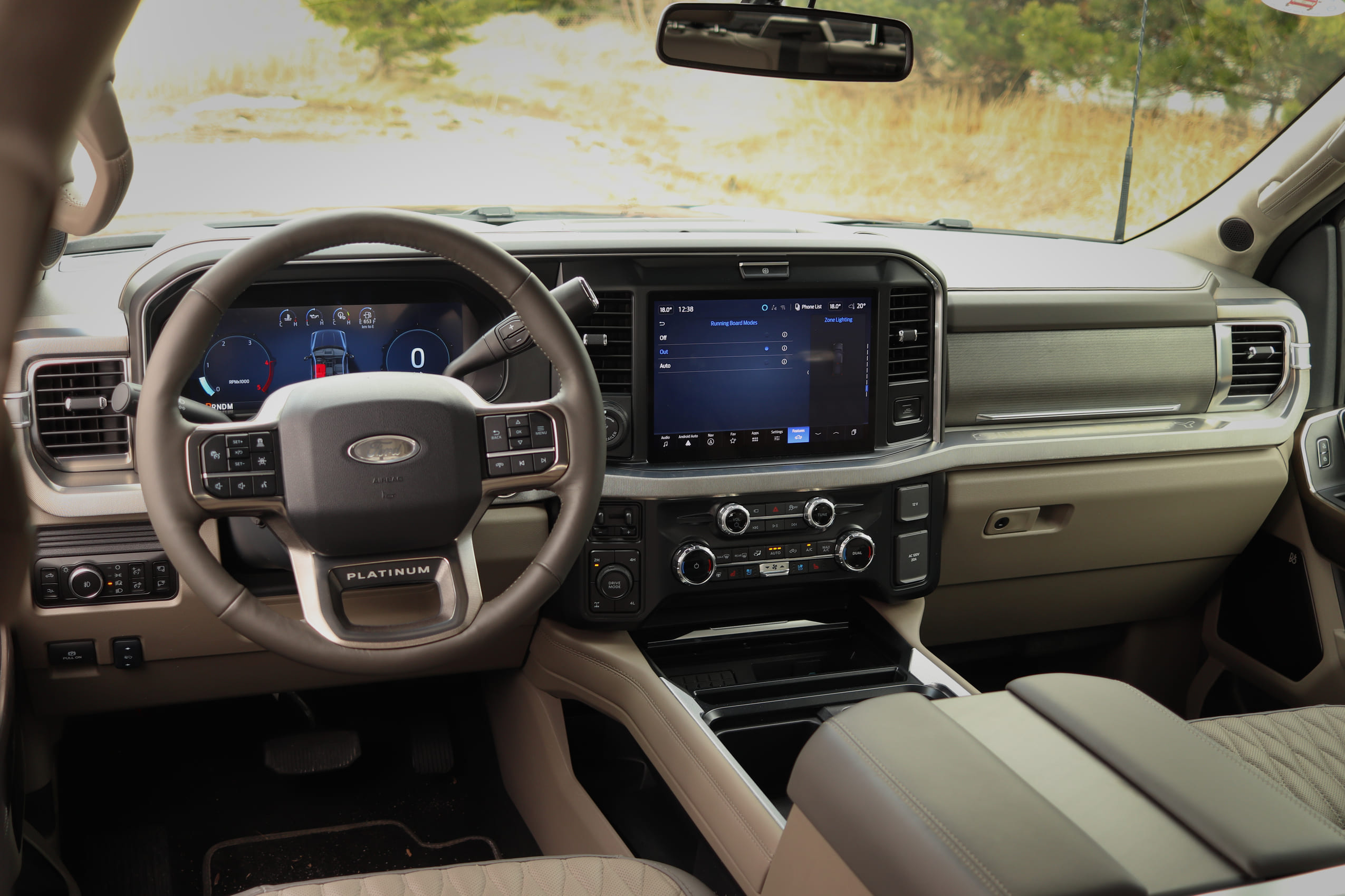 The centerpiece is the 13.2-inch infotainment screen, which is fast, crisp, and houses more towing menus than a NASA flight computer. However, the 12.3-inch digital gauge cluster is where the frustration sets in. For a vehicle this advanced, the customization is incredibly limited. You can toggle between a few preset views, but you can’t truly make it your own or bring back the classic, functional gauges of the past. It’s a vast ocean of pixels that feels slightly wasted on a UI that’s too plain to be “minimalist” and too rigid to be “useful.” It is, quite simply, a missed opportunity for a truck that prides itself on being “Super.”