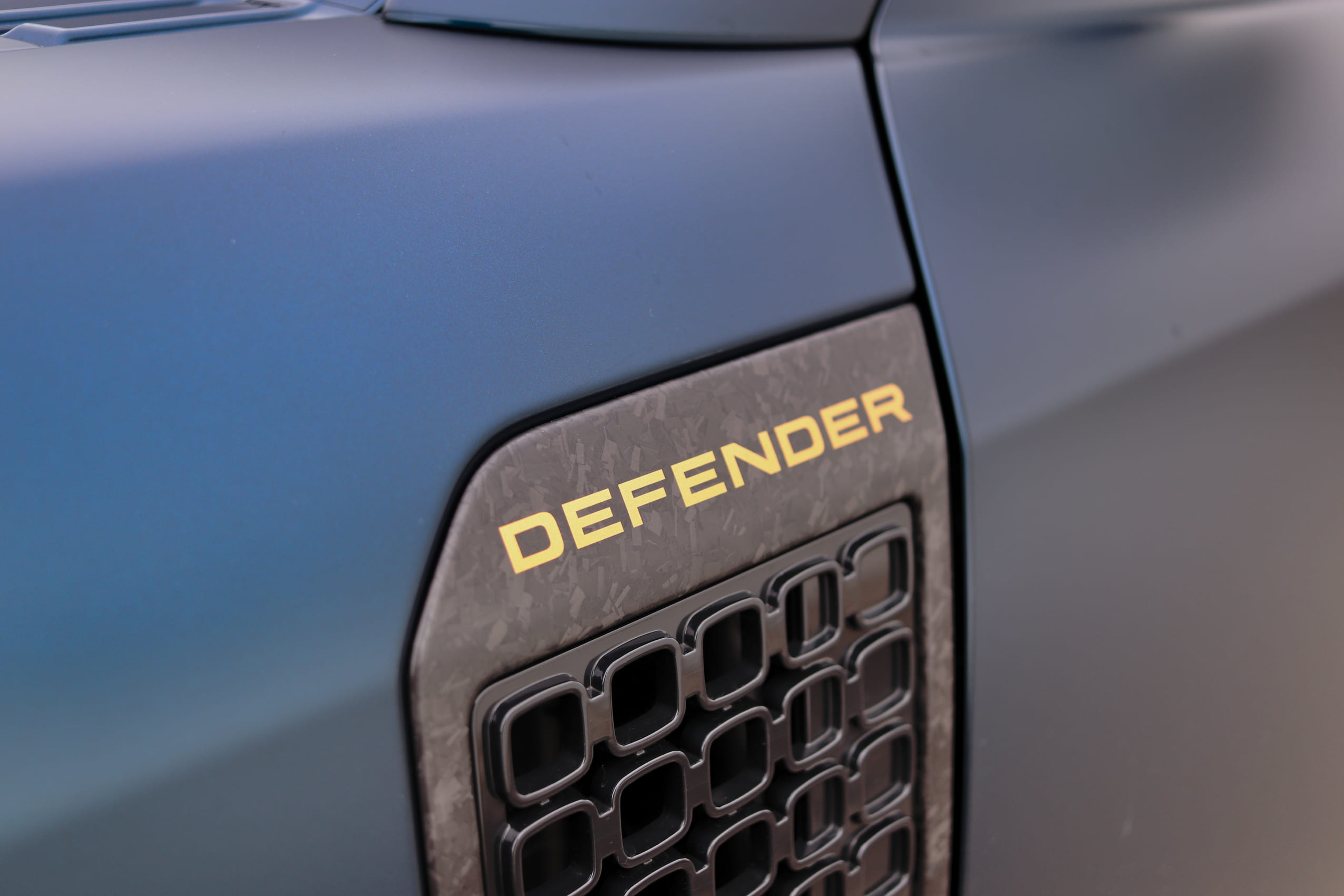 Then there are the quirks that remind you this is a Land Rover, which is to say, it’s delightfully over-detailed. Look closely at the recovery points, and you’ll see they’re finished in a distinct phosphor bronze, because why use standard steel when you can use metallurgy that matches your watch? The hood features new air intakes with carbon fiber detailing, and the matte “Sargasso” blue paint feels less like automotive pigment and more like a protective coating for a stealth bomber. It even sports a set of amber lights embedded in the front grille, a nod to North American width regulations that makes the OCTA feel less like a luxury SUV, and more like a piece of heavy machinery that happens to do 0-60 in four seconds.